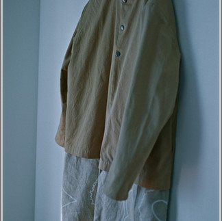 その時期に作ったので、着こんだら冬場でも着れて、シャツとかなら春や秋でも着れる、夏以外のオールシーズン着れるように生地を考えて作ったコート。